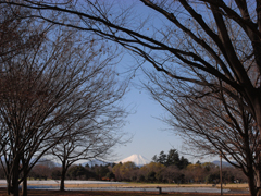 ▲晴れ渡った冬のある日、都心からも雪を頂く富士山がくっきりと見えた。望遠で撮影した。レンズの抜けの良さがお分かりいただけると思う(クリックで拡大)