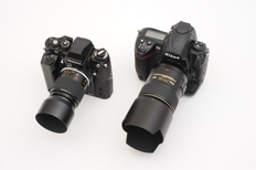 ▲左がF3と105㎜/マクロf2.8(マニュアル)、右がD3と105mm F2.8 G。大きさの違いがよく分かる。参考画像はすべてD3と105mm F2.8 Gの組み合わせで撮影した。すべてスタジオでストロボ使用。絞りは特に記してない場合はf22。