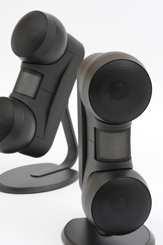 ▲樹脂で出来た不思議な形のスピーカー。ナノクリスタル・コーティングなのか丸い部分へのストロボ光の馴染み方や樹脂の質感なども良く出ていると思う(クリックで拡大)