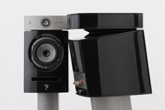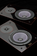 ▲表面塗装が何と「漆塗り」というカメラマン泣かせのスピーカー。スピーカーの半分程にハイライトを入れて光沢感を出した。これもナノクリスタル効果なのか大変光の馴染みがいい。スピーカーのエッジ部分に少し朱色が透けて見えて重箱の角の部分を思い出す(クリックで拡大)