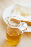 ▲高さ9cmほどの小さなピッチャーに入ったはちみつ。被写体距離0.4m。38cmまで寄れます。旅行の時の食べ物スナップなどは自分が食べる距離で席に座ったまま撮れる画角と距離ですね。焦点距離70mm、f/4.0、1/60 (クリックで拡大)