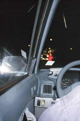 撮りたいという衝動から離れ1枚の写真になった時、反射してしまった車の中の物と外の風景が混ざったり、夜フラッシュをたいてしまって内部が鮮明に写ったりと、撮影時モチーフにしたかったこと以外の情報とハプニングが混在してしまいます。