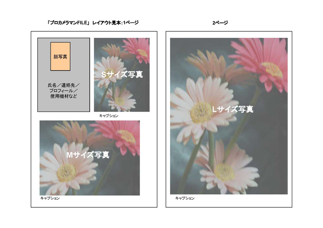 ←プロカメラマンFILEのフォーマット見本。約1/4ページ分作家プロフィールのスペースが入ります。