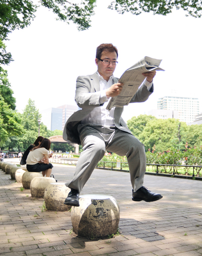 旅先では、自分で跳んで撮ってたんです。それは後に、「ソラリーマン」という作品につながるんですけど、友達も撮り始めたら面白くて、撮った写真をプレゼントしたり、学園祭や路上で売ったりしてました。