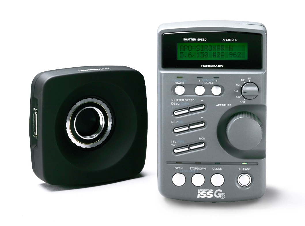 ▲現在のホースマン製品より「ISS-G3」。デジタル撮影に欠かせない電子シャッターシステム。1/10ステップまでの絞り設定など、正確な露出設定が可能(クリックで拡大)