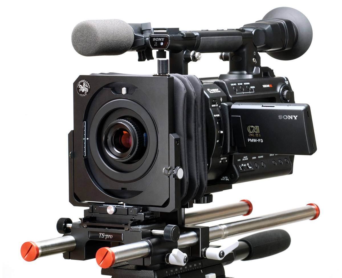 ▲現在のホースマン製品より「TS-pro」。シネカメラの前面に取り付けて、アオリ撮影を可能にするティルト&シフト・レンズコントロールシステム。効果的にボケ味をコントロール