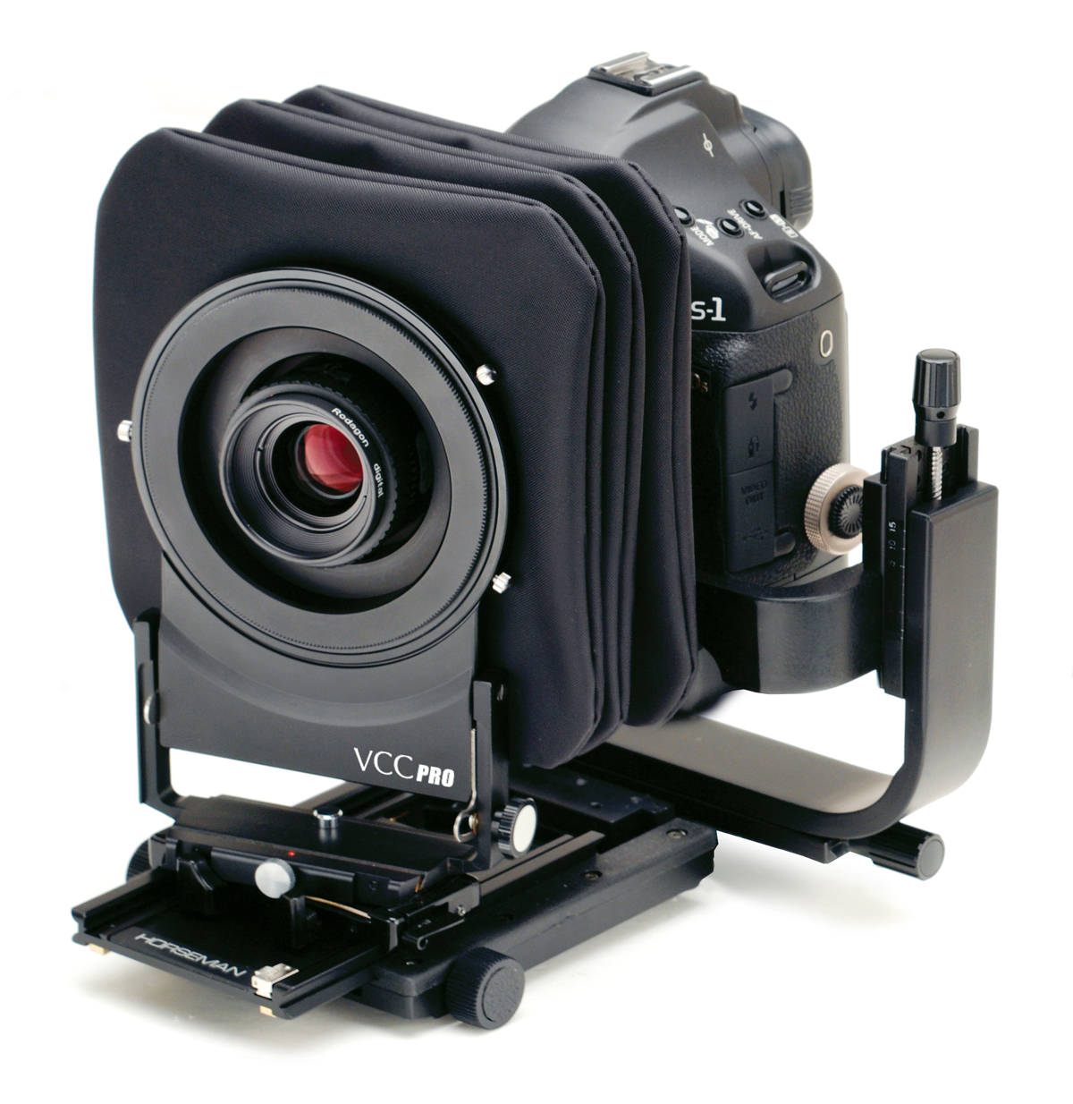 ▲現在のホースマン製品より「VCC PRO」。キヤノン、ニコンのデジタル一眼カメラを装着し、簡単にアオリ撮影が行える装置(クリックで拡大)