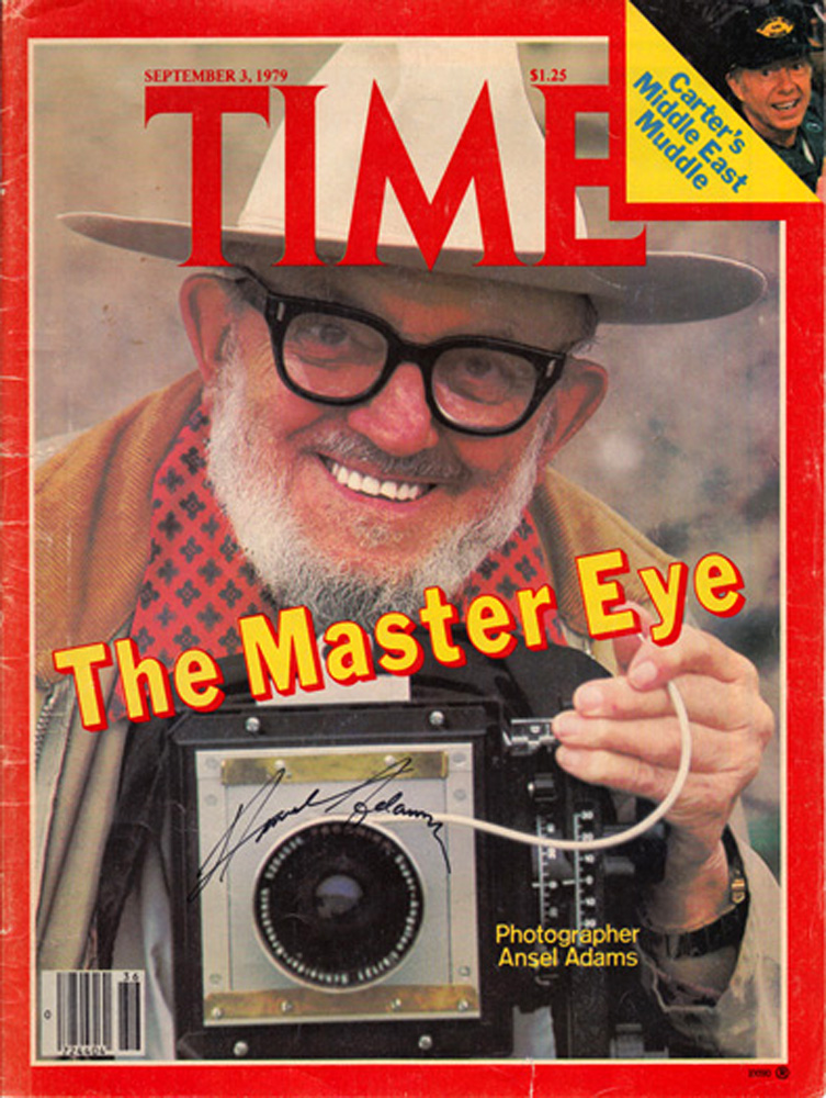 ▲「TIME」誌の表紙を飾ったアンセル・アダムス。手元にはホースマンのカメラ(クリックで拡大)