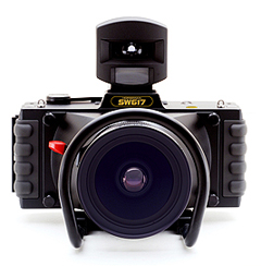 ▲中国で人気を博しているというパノラマカメラ「SW617」。6×17のパノラマフォーマットで超広角撮影が楽しめる。シュナイダー、ローデンシュトックなど7種類のレンズが揃っている(クリックで拡大)