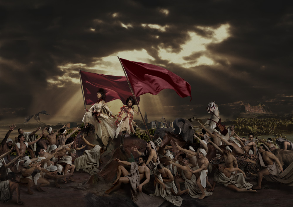 ▲コンデナストジャパン「VOGUE NIPPON」(2003年)。Dior表参道ビルのオープンのためのタイアップ企画。特注の人形と背景セットは日本で、ドレスはパリにて撮影。パリから撮影済みを東京のスタッフにメールで先に送り、切り抜きの指示をしておき、帰国後合成作業をしていた(クリックで拡大)
