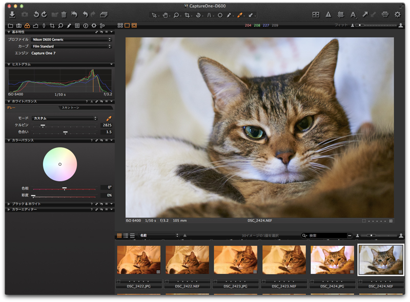 他にも、色合いや彩度のコントロール、高ISO感度で撮ったときのノイズ低減処理(わざとざらつきを残したいこともあるしね)も調整できる。