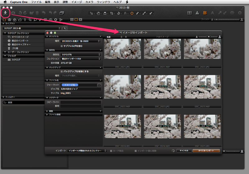 Capture One上で写真を読み込むと、パソコンのハードディスクにオリジナルが読み込まれると同時に、それが「カタログ」上にデータベース化されていくのだ。カタログというのは写真を集めたライブラリであり、写真データベースだと思っていい。