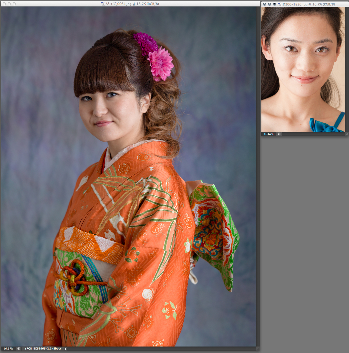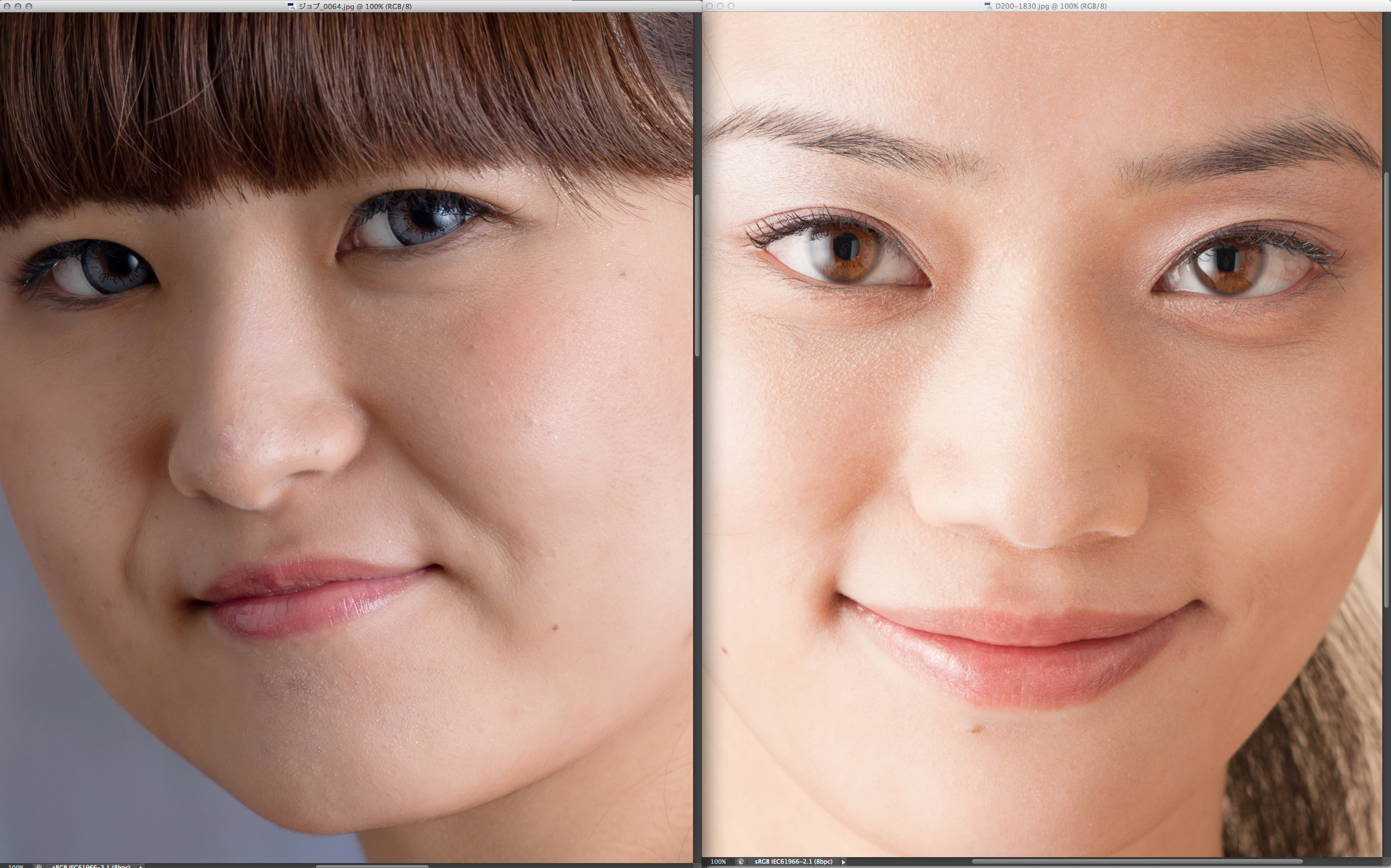 以上が、元データが大きい方が大判プリント、質感再現に絶対的に「有利」だという理由です。5,000万画素程度となると人物を全身で撮影していても、顔の重要な成分である睫毛や眉毛も何とか解像するところまで持ってこれるのです。