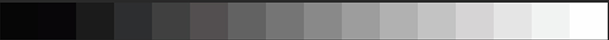 デジタルは、必ずゼロか1という割り切れる数値で物事を考えます。その際に再現できる差を細かくしていけば当然無段階表示に近づいていくわけです。分かりやすいように モノクロの階調数と考えてちょっと図式化してみました。8ビットで表示可能な階調数は256階調ですが、それを16階調として仮定します。