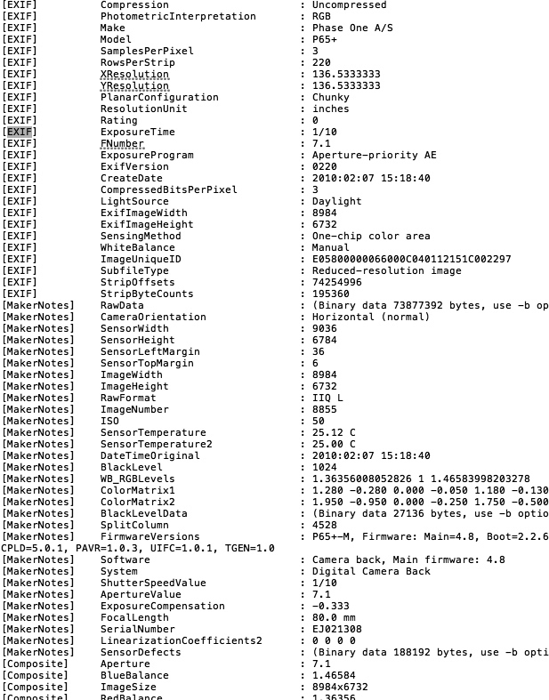 中判デジタルカメラの場合はこの作業が少なく、全体に広い情報を記録しているようです、うーん! 改めてRAWデータは確かに素材生が高く、ダイナミックレンジが広く、色調変換にもかなりの耐性を持ってはいますが、「どのカメラで」「どんな露出で」「レンズはこれで」「どのような方向性を持って」撮影されたのかが記録されているのですね。