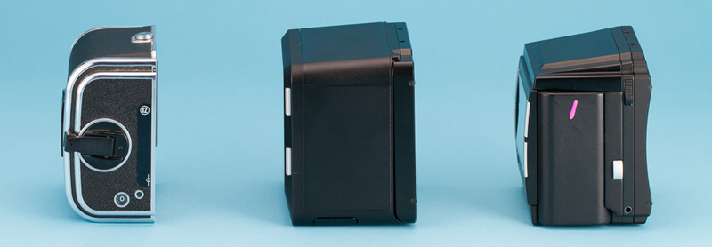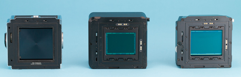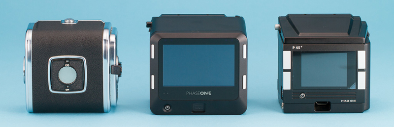▲左からフィルムホルダー、Phase One IQ140、Phase One P45+の背面(クリックで拡大)