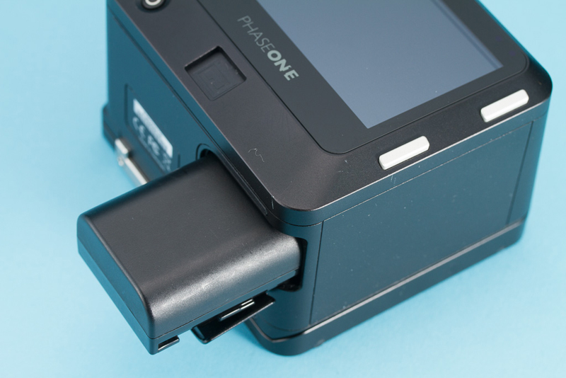 Phase One P45+のバッテリーです。このようにサイドにスライドさせて入れます。Phase OneのPシリーズはすべて同じ形式です。