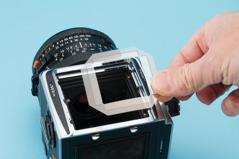 まず、最初にやるべきことは、デジタルバックを購入すると付属される、このマスクをファインダーに入れることからです。