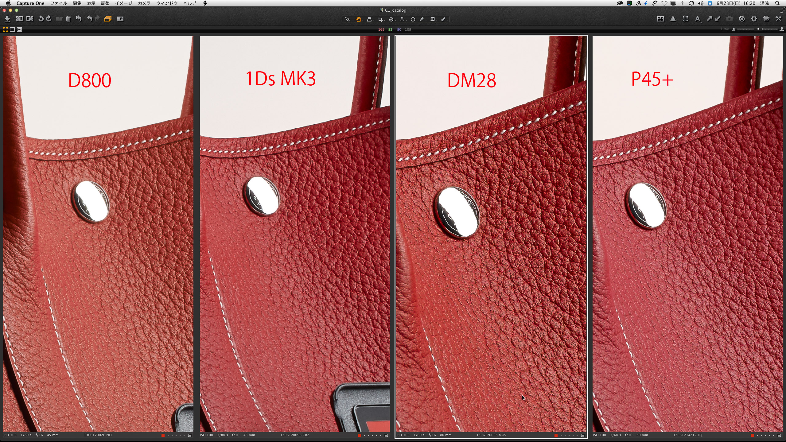 各カメラで撮影された画像を100%拡大したもの。DM28のシャープさが印象的です。