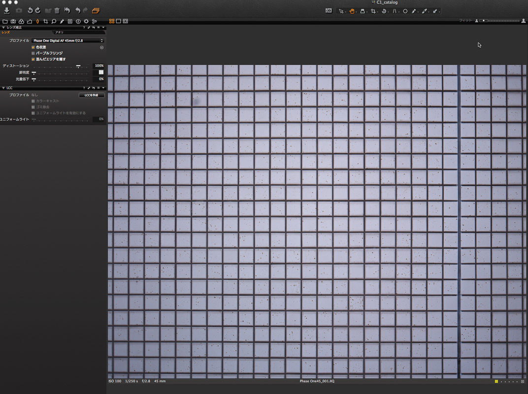 歪みや周辺光量落ちに関しては、Phase Oneの場合、アプリケーションで補正ができます。