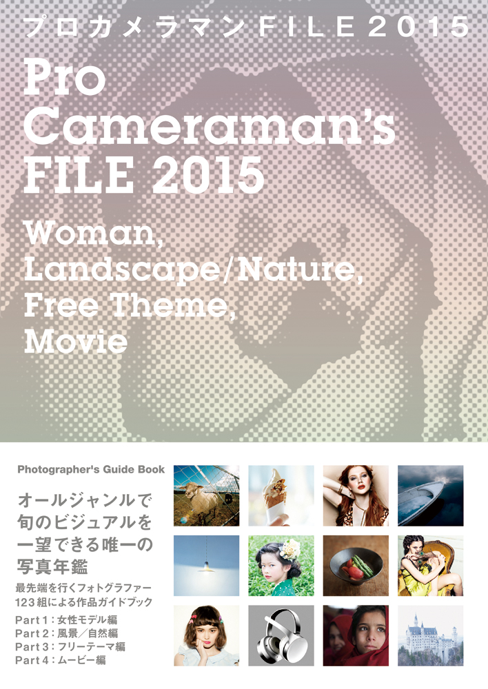 本書「プロカメラマンFILE 2015」は、日本の写真の最先端を走るフォトグラファー123組の作品を、「女性モデル」「風景/自然」「フリーテーマ」「ムービー」の4つの章で紹介するガイドブック。