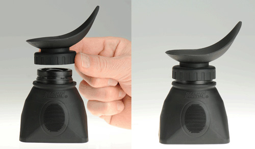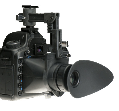 「フードマン・シネマキットPRO」(写真上)は、動画撮影時にフードルーペ3.0と3倍マグニファイヤーをLCDモニター上にセットしてパーフェクトなフォーカシング環境を提供するだけでなく、ワンタッチでそのファインダーを上方に跳ね上げ、90度回転させることにより、瞬時に静止画撮影用のファインダーを覗き静止画の撮影が行えるハイブリッドなファインダーキット。