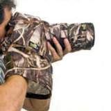 「レンズコート レインコート・プロ」14,700円(税込)。300mm F2.8クラスから800mm F5.6クラスまでの超望遠レンズに、カメラボディを付けた状態ですっぽり覆えるレインコート。1色のみ。