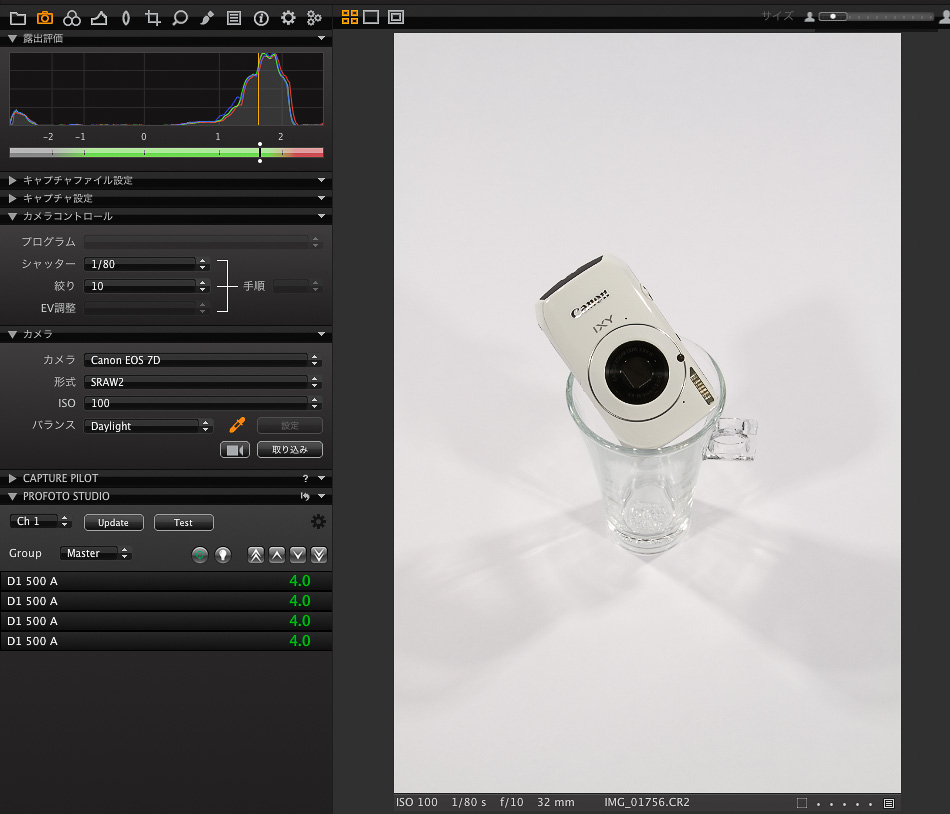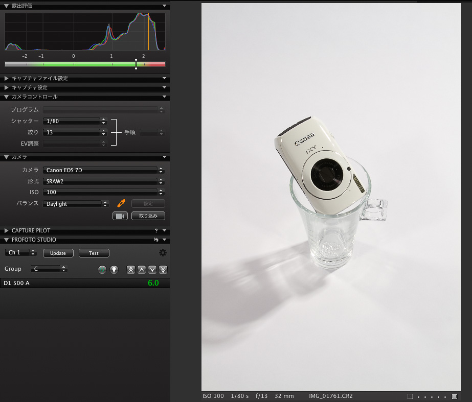 PCJ連載記事「Capture One 徹底使いこなし術 」の第14回、「Capture One 6.2でキヤノン、ニコンのカメラコントロール」でC1からカメラをコントロールできるようになったことを書いたが、このProfoto Airを組み合わせることにより、さらにC1だけですべてが制御できる環境になる。これはアシスタントも少なくて済むなど、撮影現場での省力化と時間短縮、さらにその結果として経費節減にもなるだろう。