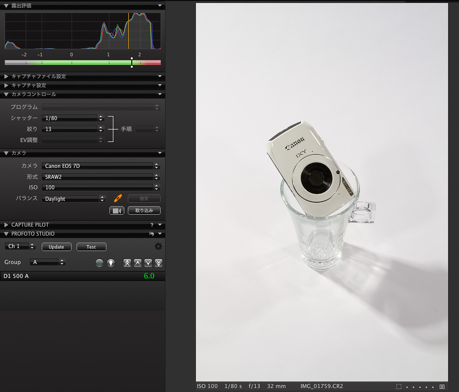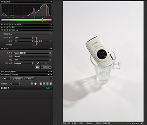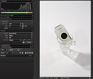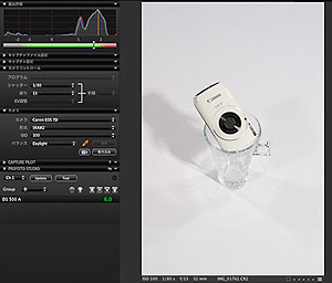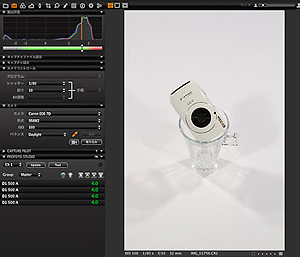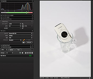 ◀このようにライトの変更、そして、シャッターを切る、露出の調整までPC画面から離れることなくマウスクリックだけでできてしまう。