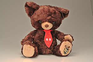 次にV1でモノの撮影を行った。撮影はよくある物撮りセット。白デコラに天トレトップライト。左トレペ越しライト。右は白おこしセッ ト。V1はシンクロ端子がないのでモデリングライト(150Wハロゲン)で撮影した。はじめにぬいぐるみを撮る。