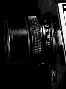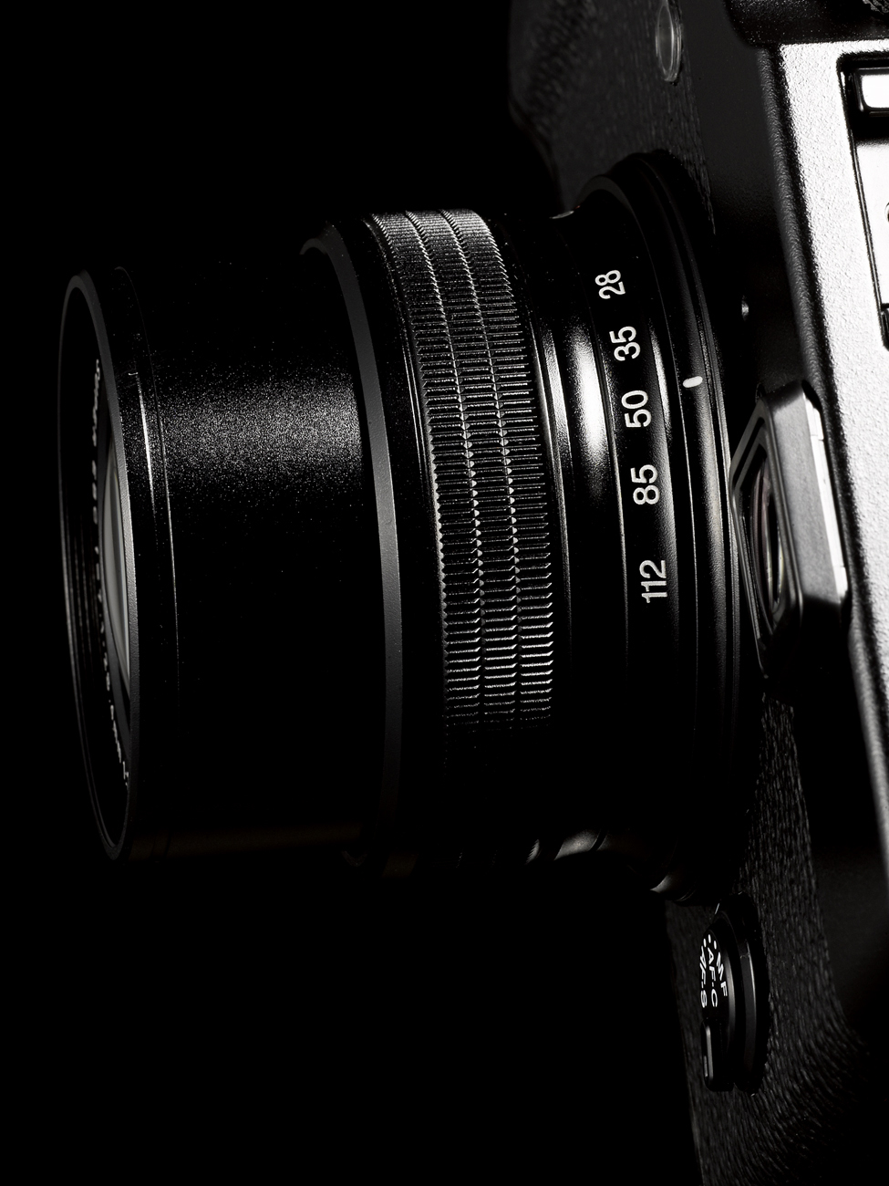▲光学式ズームレンズもマニュアルで操作する。レンズの胴体に28、35、50、85、112と35ミリ換算の値が書いてあり分かりやすい。この表示はうれしい。なお、レンズのズームを左に回すことでカメラの電源のON/OFFを兼ねている。(クリックで拡大)