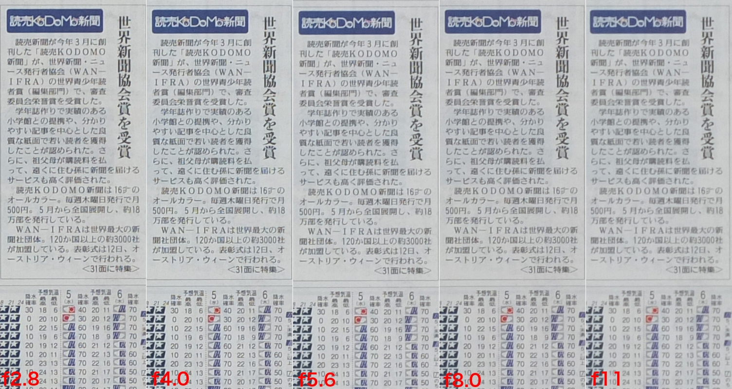 ◀f5.6での中心部と周辺。非常に良く描写している。