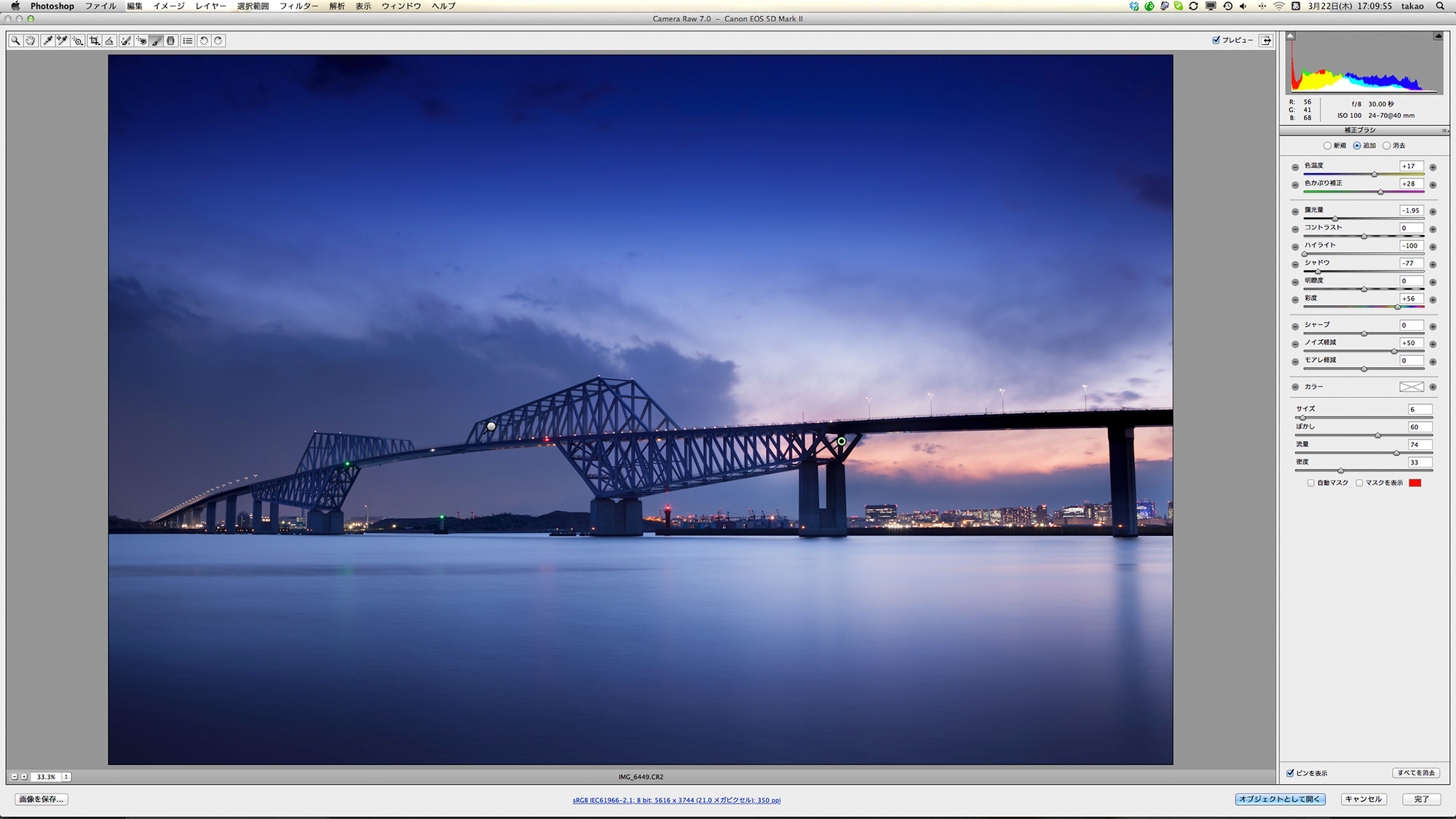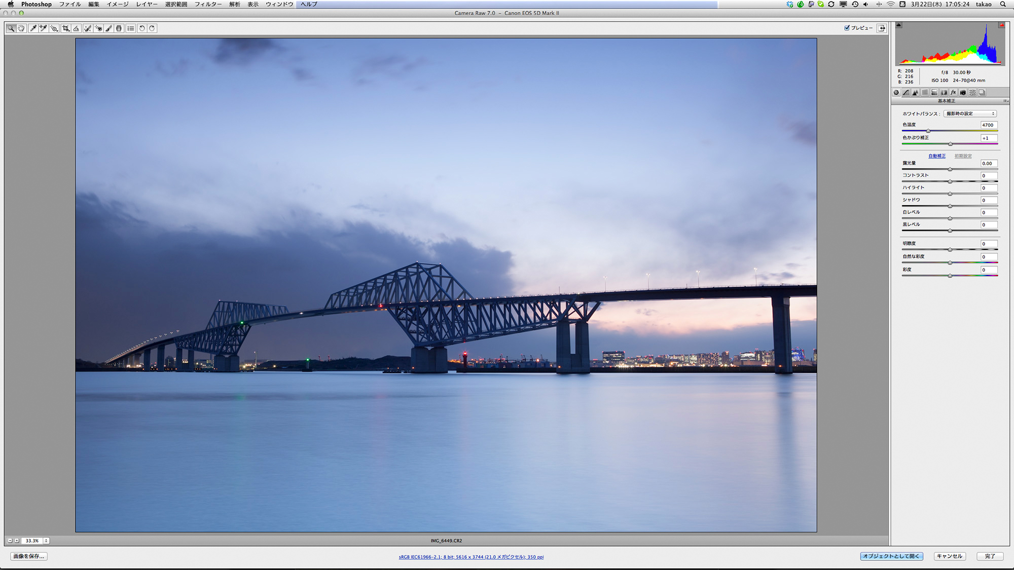 CameaRawは確実に進化している。画像合成、画像修正などの処理がなく、撮影>トーン調整、シャープ処理>完成であれば、CameraRawだけでほとんどの処理が済んでしまう。