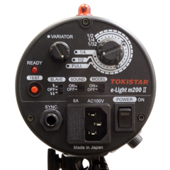ワイドトレードは照明機材を多く取り扱っているメーカーだ。その中で「TOKISTAR」(トキスター)というブランド名でモノブロックストロボの製造と販売をしている。その名の由来は、同社の地元新潟県にいる鳥の「トキ」をもじって命名したものだという。同社は2005年に設立とストロボメーカーとしては後発だが、価格や品質、アイデアで老舗のメーカーに対抗しているところだ。そのTOKISTARの中でe-light m200 IIが自社製造で国産製だ。最大出力は200Wsで調光はFULL~1/32までに対応している。