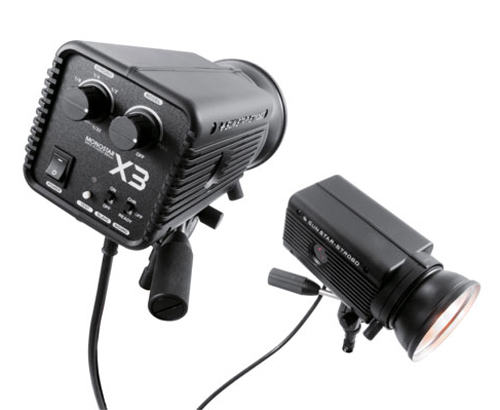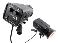 「MONOSTAR X3」は、2010年12月に発表されたばかりの新型モノブロックストロボだ。出力が300Wsで調光範囲はFULL~1/32まで対応する。背面のデジタル表示のディスプレイは省略されている以外はMONOSTAR X4と同等のクオリティを実現している。