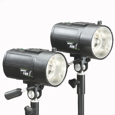 冷却ファンを搭載した小型のモノブロックストロボを選びたいならば、fシリーズとなる。ファンを内蔵していないNシリーズよりも軽くて小さい。MONO150fで1.25kg、MONO300fで1.3kgしかない。また、冷却ファンを搭載しているのでシャッターの多い撮影にも安心して使える。こちらも300fと150 fの2種類あるが300 fのほうが売れているとのこと。
