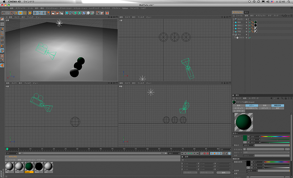 ▲CINEMA 4Dの作業ウインドウ(クリックで拡大)