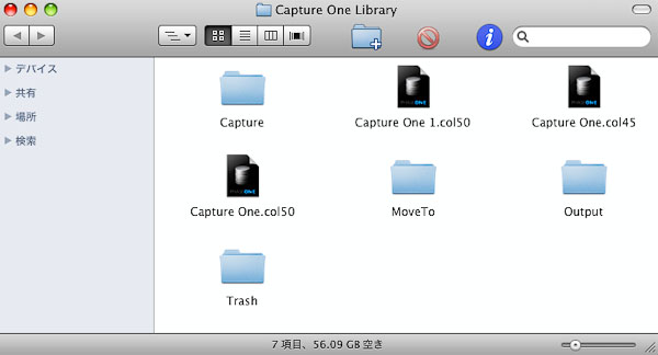 Macの場合、ユーザ>ユーザ名>ピクチャフォルダ>CaptureOneLibrary というフォルダが作られる。 |
