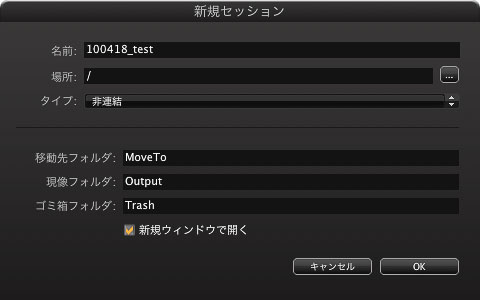 名前はセッションの名前を入れる。これがフォルダの名前にもなるので、後々のことを考えると、半角英数字で機種に依存しない文字を使っておいた方が無難だろう。