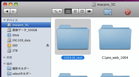 ◀新しい撮影用セッションフォルダはこのようにハードディスク直下にできた。 |