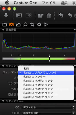 キャプチャでは画像の名前を選択できる。撮影順に管理したい時などはカウンタにするとよいだろう。 |