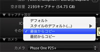 「最後からコピー」にしておくと撮影画像に対して何らかの編集をした場合、次からのショットにそのパラメータを自動的に付けるという機能だ。これに関しては次の回に解説する。 |