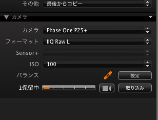◀Phase One以外のカメラの場合、C1Proから変更できる項目はこの感度設定だけになる。