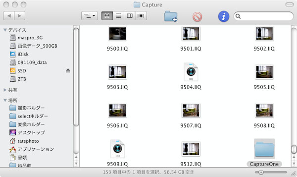 そのCaptureフォルダに中に「CaptureOne」というフォルダができるが、その中にこのフォルダ内の設定、サムネイル画像が格納されている。