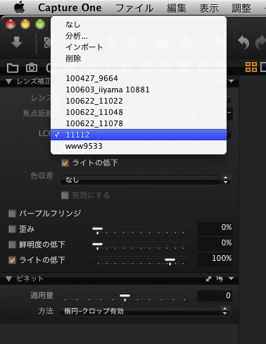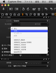 なお、LCCデータは撮影時にLCC用画像を撮影さえしておけば、撮影時に掛ける必要もない。ただ、広角レンズなどを使った時はあまりに色むらがひどい。色むらのある画像をクライアント立ち会いで見せると不安を抱かせるという時は、撮影現場で掛けることもある。ただし、撮影画像にいろいろな処理を施すほど、動作が遅くなるので、僕の場合、撮影時は撮影だけにするようにしている。