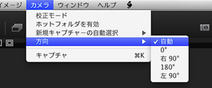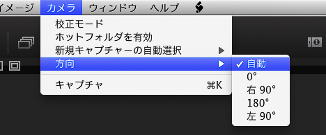 ◀撮影画像のローテーションはメニューバーから。たいていは「自動」で大丈夫だが、俯瞰撮影ではここで指定した方が楽だ。