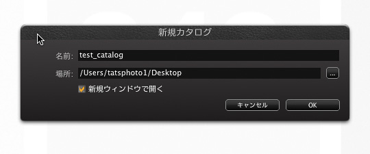 ◀今回は分かりやすいようにデスクトップに新規カタログを作った。