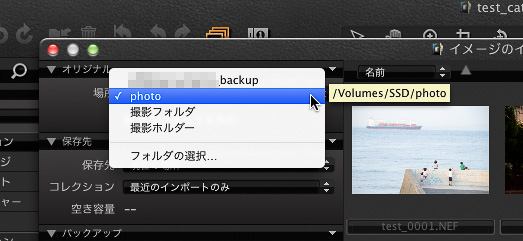 ◀オリジナルの項目は画像のあるフォルダを指定する。左の例では外部ストレージであるSSDの中の「Photo」というフォルダを指定したところ。