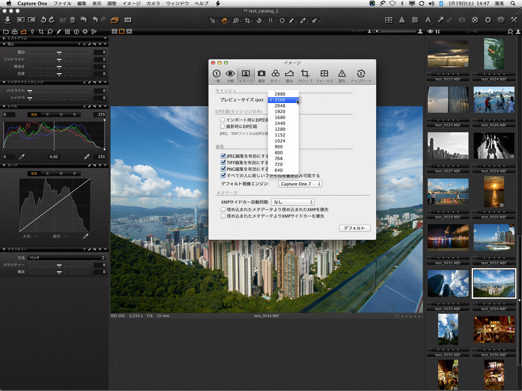 僕自身もバージョン7にしてから、もっとも戸惑ったのがこのプレビューサイズだ。仕事上、撮影後に見本データをクライアントに送ったり、持ち帰ることがほとんどなのだが、その際に2560ピクセルのJPEGではかなり大きいと感じる。もちろん、A4裁ち落としなど、大きく扱われる写真の見本ならこれくらいは欲しいところだが、多くの場合、そうではない。小さい扱いでも2560ピクセルは、あまりに大きすぎる。