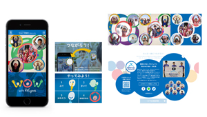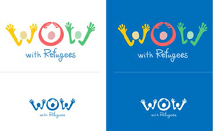 「つなごう難民プロジェクト」という日本語ロゴができ、日本版サイトが落ち着いてから、英語サイトも合わせて制作することとなった。そのタイミングで、英語版のロゴの開発に取り掛かった。直訳ではなく、楽しく参加したくなるようなタイトルで、その上「おおきなわ」を作る動作が今回のプロジェクトのキーだったので、タイトルは「WOW (with Refugees)」とし、人が「動き」で喜びやつながりを表現しているロゴを制作した(日本語ロゴはWebサイト制作を依頼した株式会社創さん制作)。